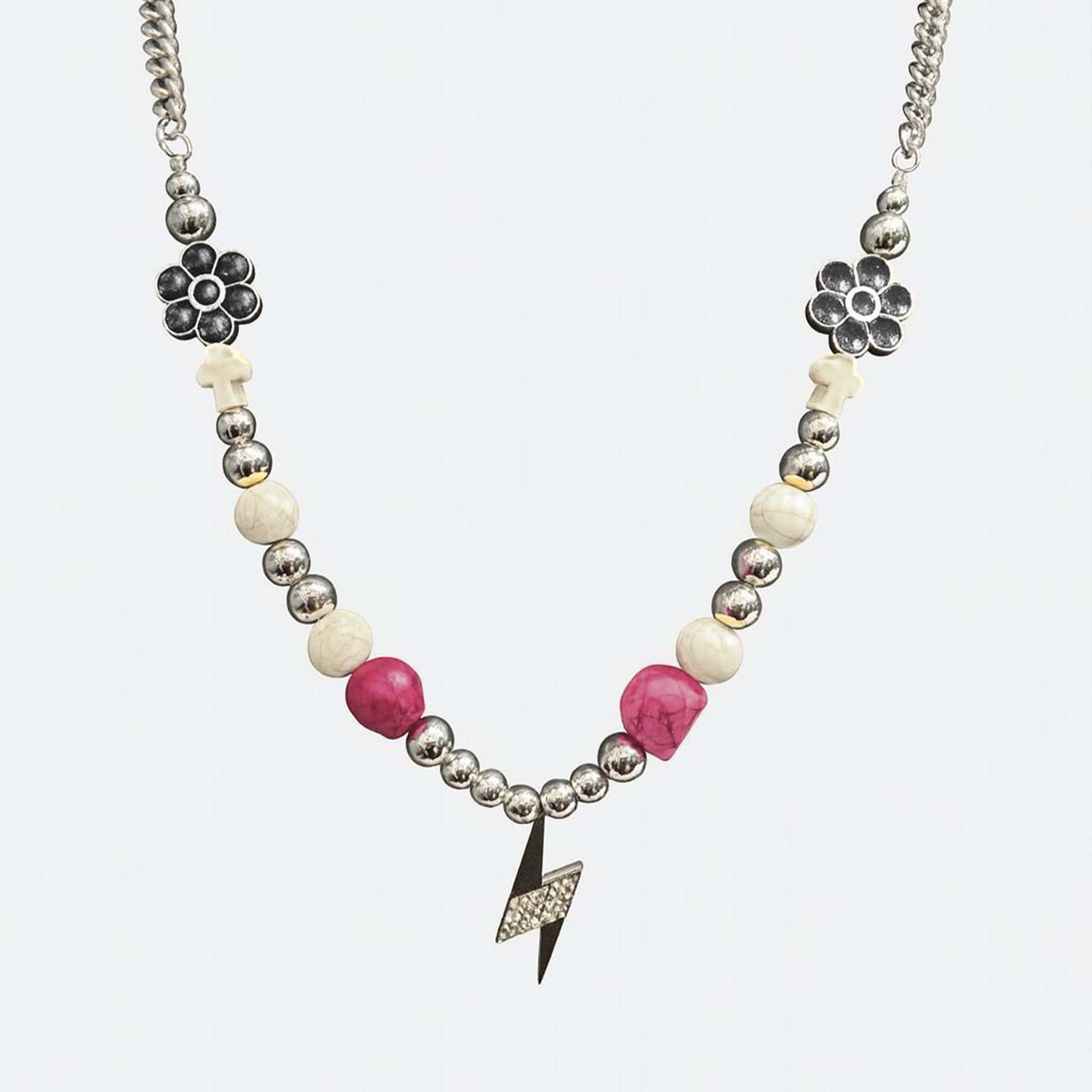 El Skull Bloom Necklace es una fusión de lo rebelde y lo simbólico. Su diseño combina esferas metálicas con calaveras talladas en tonos vibrantes, flores oscuras y pequeños detalles en forma de cruz, creando un estilo alternativo con mucha personalidad. Fabricado en acero inoxidable, este collar refleja un contraste único entre lo gótico y lo urbano, ideal para quienes buscan destacar con un accesorio fuera de lo común.